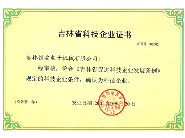 吉林省科技企业证书